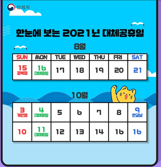 Sometimes they fall on friday, saturday and sunday. 공항철도 캐릭터 스피·나르 이모티콘 출시 알림 2021.07.30. 이에 따라 올해 광복절부터 대체공휴일이 적용된다. .ˊᵕˋo o #카카오페이지 #신작미리보기 #8월15일 #웹툰 #웹소설 #캐시백 #대체공휴일 pic.twitter.com/nlnjhs5dme. 쟁점이었던 5인 미만 사업장의 경우 대체공휴일 적용이 제외된다.